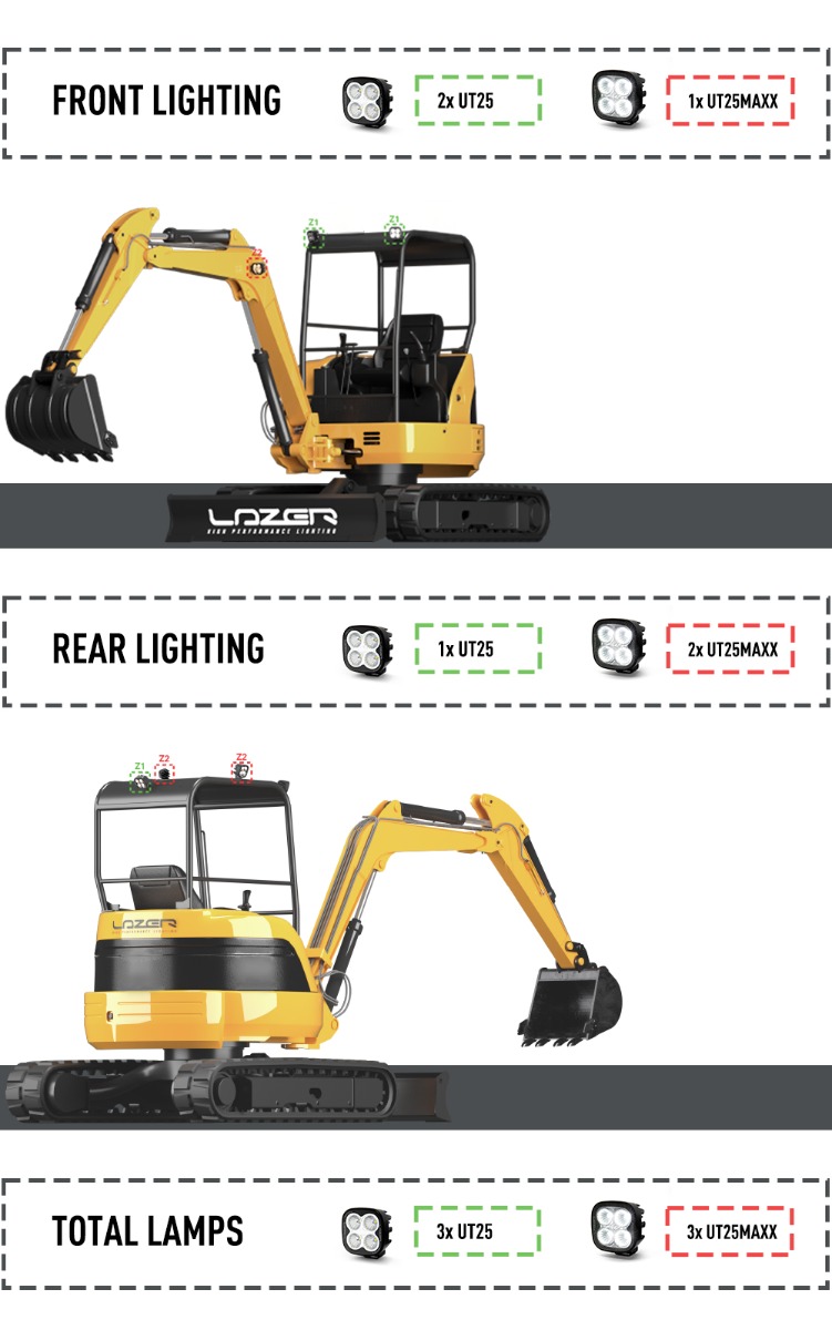Mini Digger Front & Rear Lighting Setup: